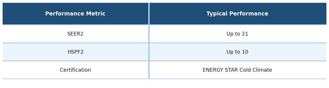 Typical performance specifications for advanced cold climate systems can include: